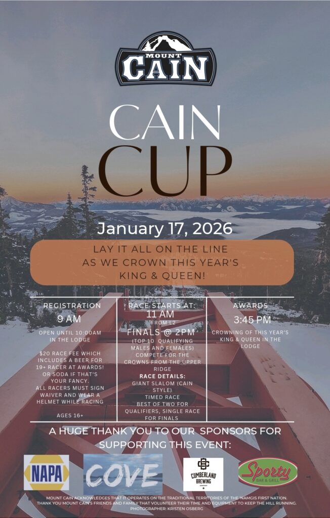 Was great to see you all braving the elements this past weekend. While everyone was lapping the misty runs, 12 Cain regulars were absorbing more than just the moisture in the air, with the first Avalanche Search and Rescue course held by the Canadian Avalanche Association on the Island being run on Mount Cain. Huge thank you to Jory Shepard and Dave Kallai for imparting their knowledge on the team and the CAA for facilitating the course. Cain is now slightly more safe-ish!